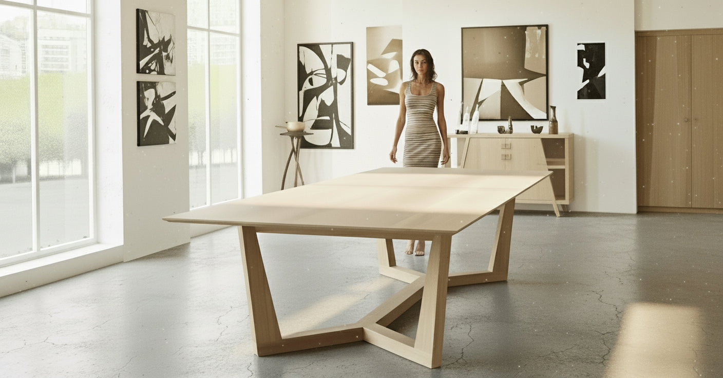 White oak catches daylight like linen, wrapped around the familiar lines of the Lani Dines. A table that feels both grounded and weightless.