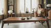 Broad-shouldered and unapologetic, Van Ness carries a single, massive Claro Walnut slab on a sculpted trestle base of matching walnut. Named after one of San Francisco’s grand boulevards, it’s a table built for presence — bold, architectural, and honest in its scale. Every inch celebrates the weight and grain of true hardwood, finished to a quiet glow that rewards touch.